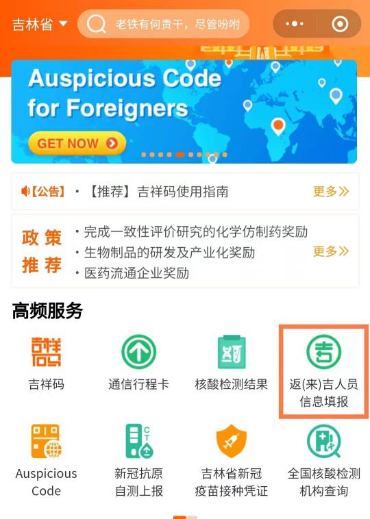 1.登录“吉事办”APP—返(来)吉人员信息填报—进行报备;